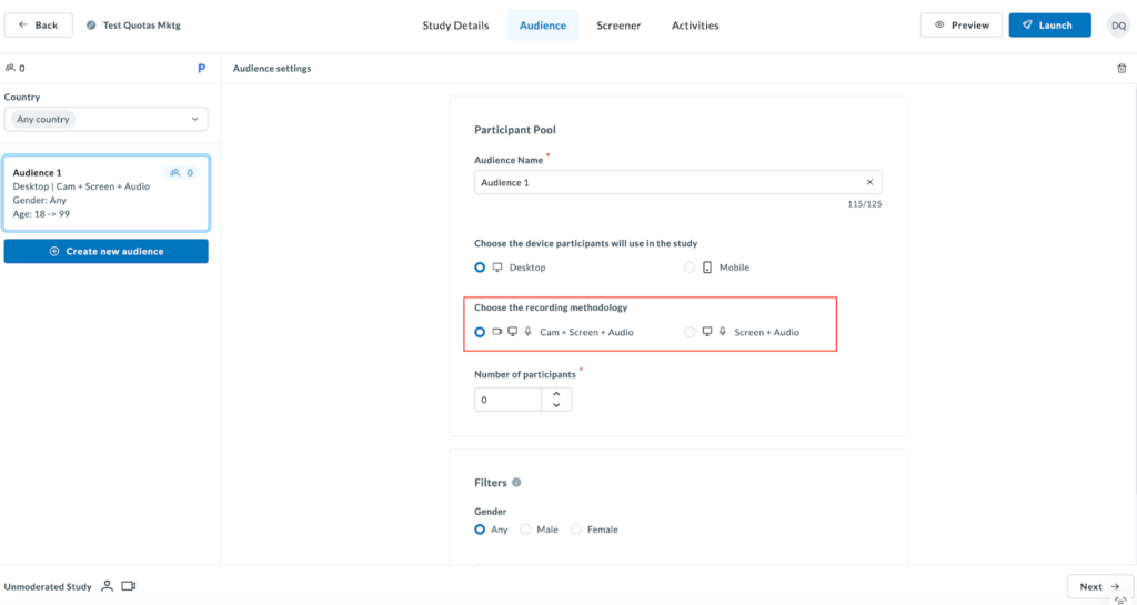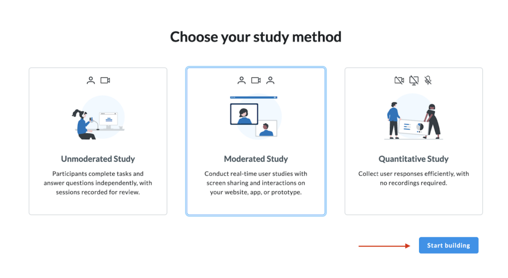 If you’re running an unmoderated study, you can also choose the recording methodology.