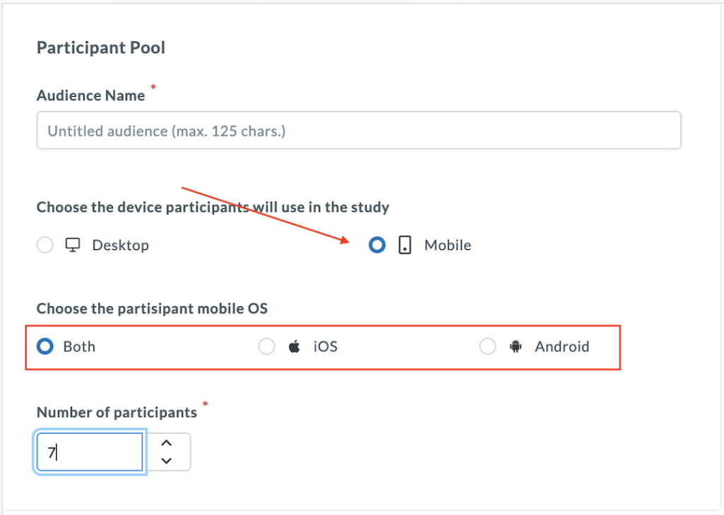 - Choose the Device: Specify if your participants should use a Desktop or Mobile device for the session.