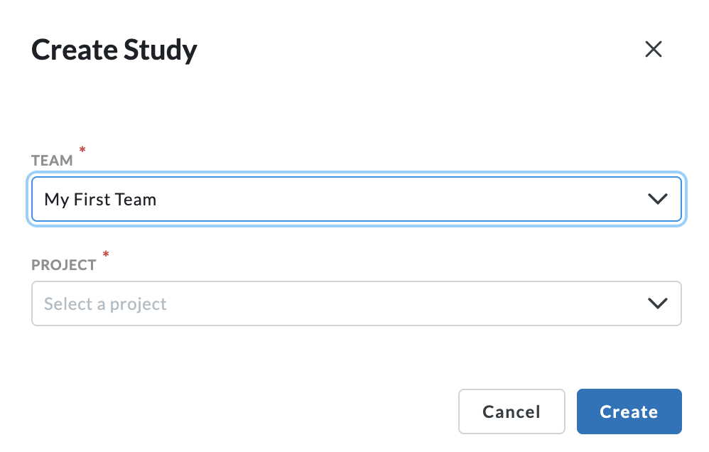 Next, select the Team the Study will go under.