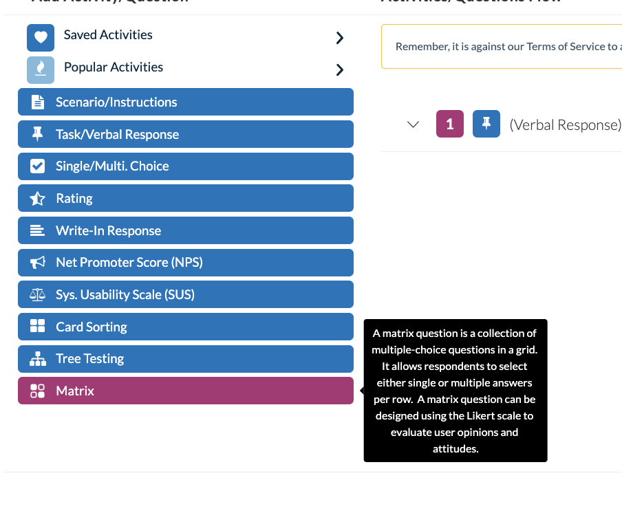 - Once you are done editing, you can click on the “Preview Activity” button to see what the matrix question will look like for your study participants.