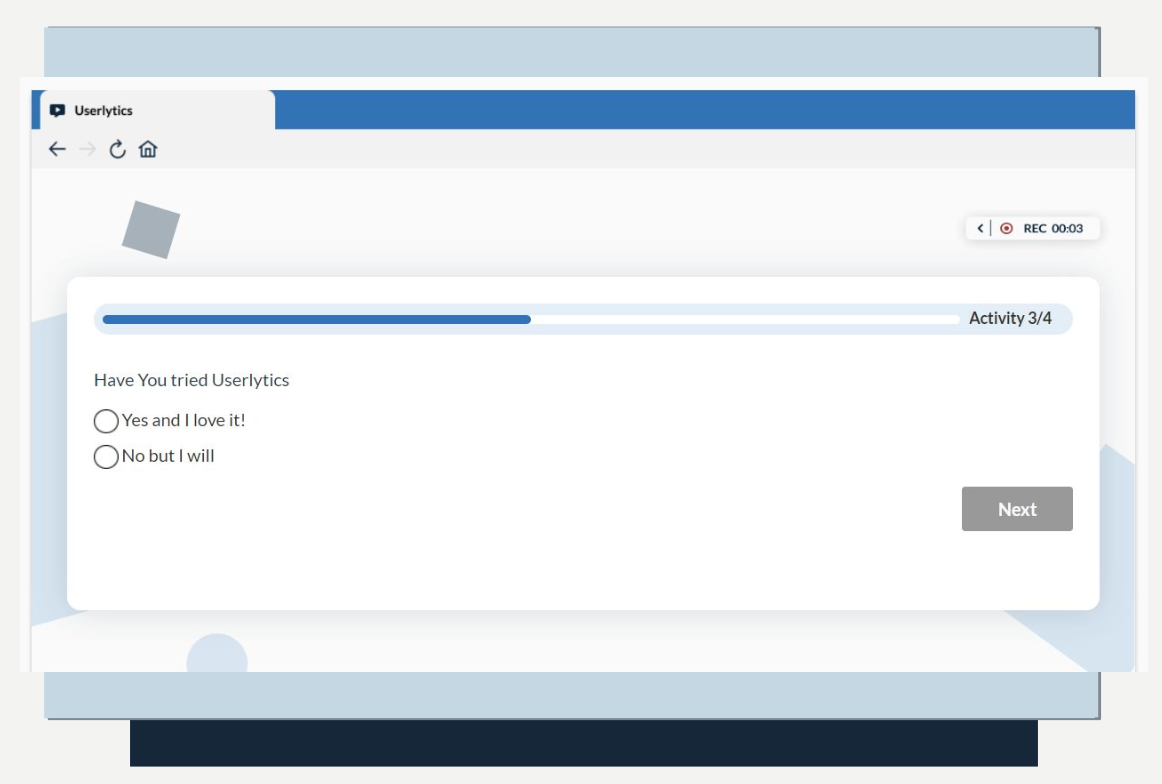 Tip: Qualitative and quantitative research methodologies can be easily hosted through Userlytics. We have all the tools to support thorough, comprehensive research methodologies!
